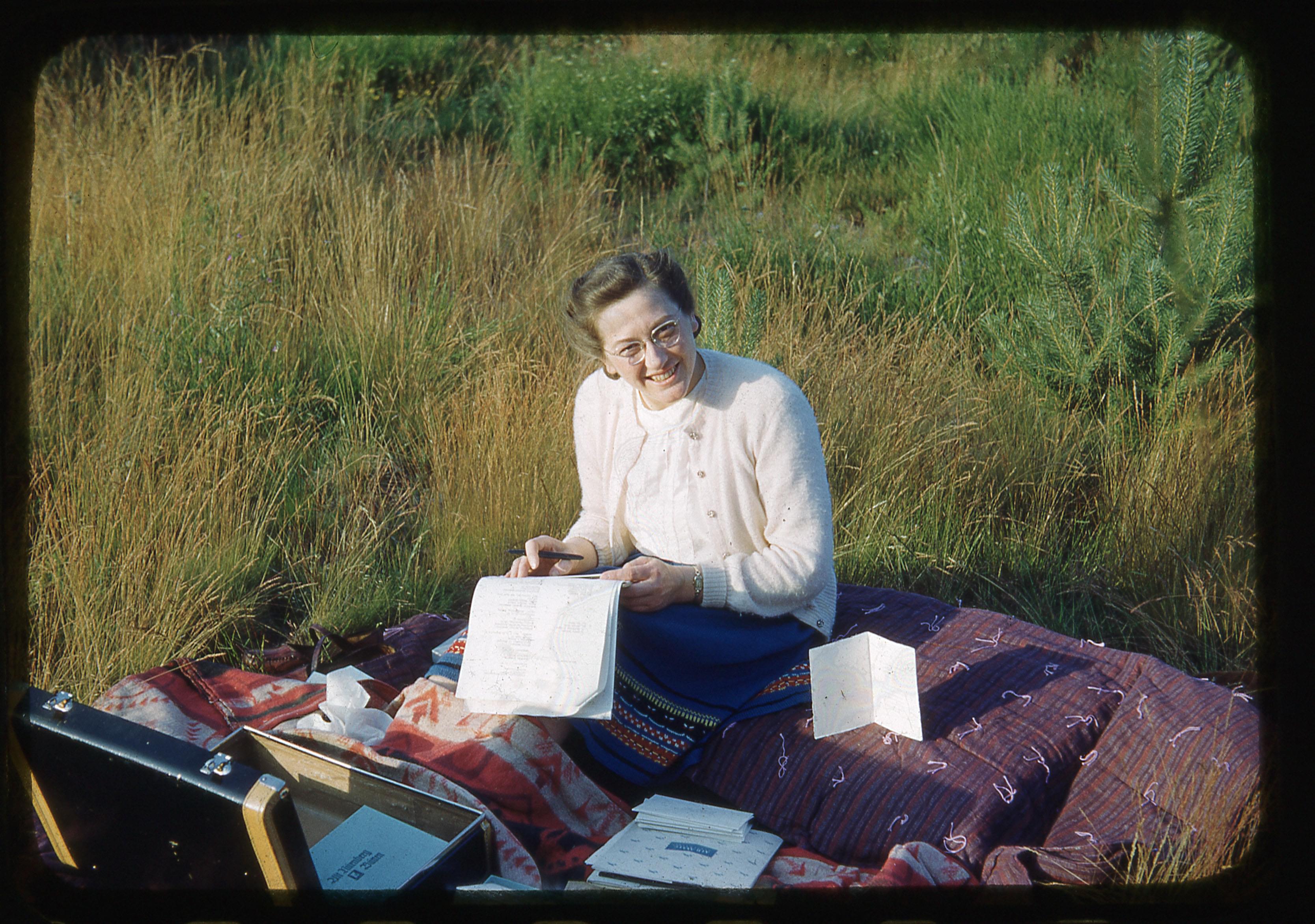- "Edith addressing invitations. July 2, 1951"