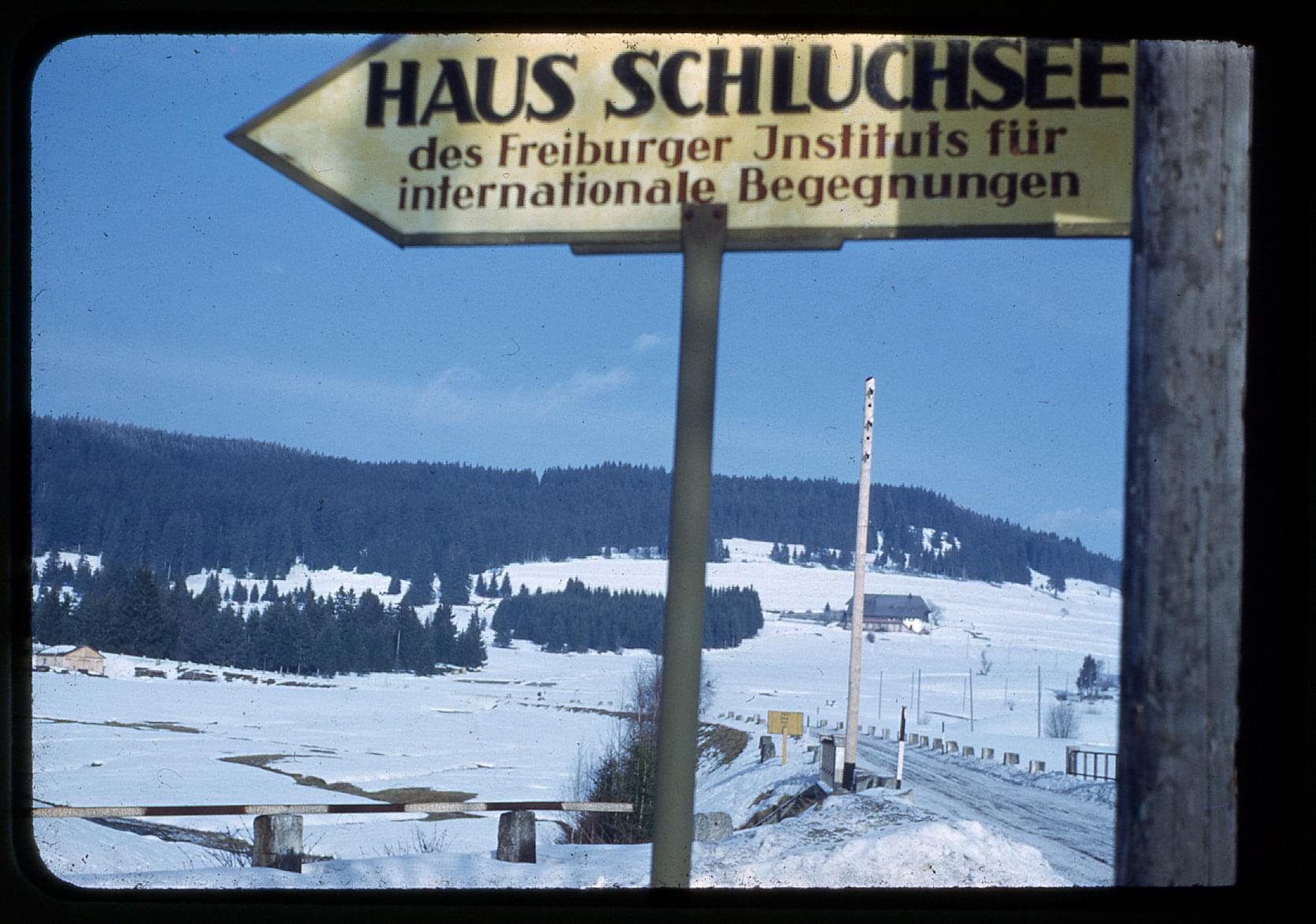 - "Schwarzwald, Schluchsee sign / Feb. 1951" Sign reading "Haus Schluchsee des Freiburger Instituts für internationale Begegnungen"