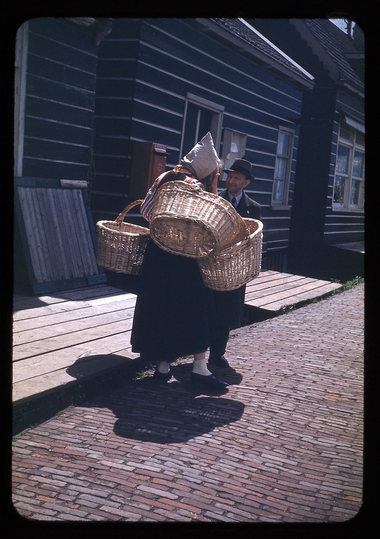 "Our guide & lady selling baskets / Makkum"