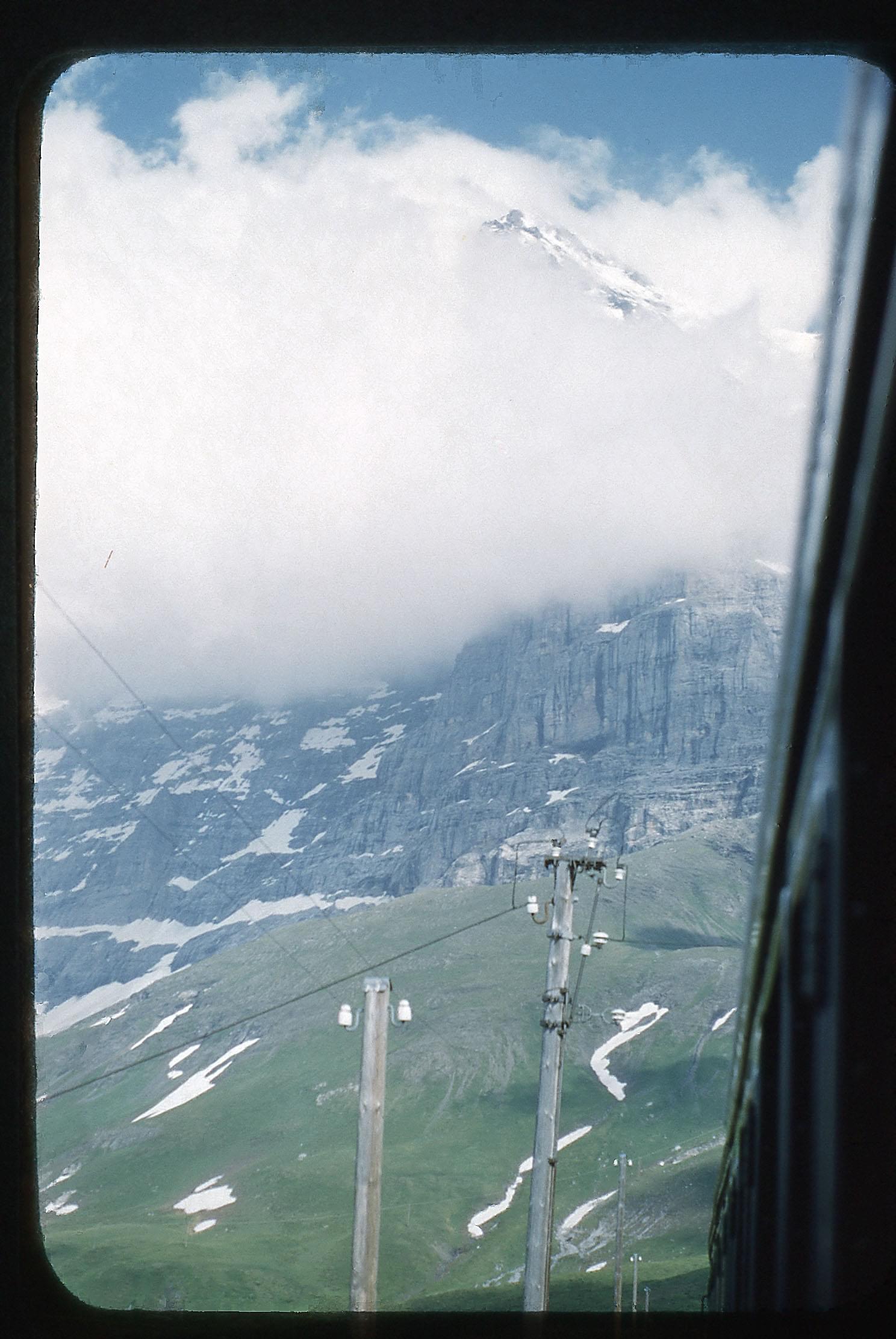 "Jungfrau hidden in white clouds / Switzerland / on train to K. Scheidegg"