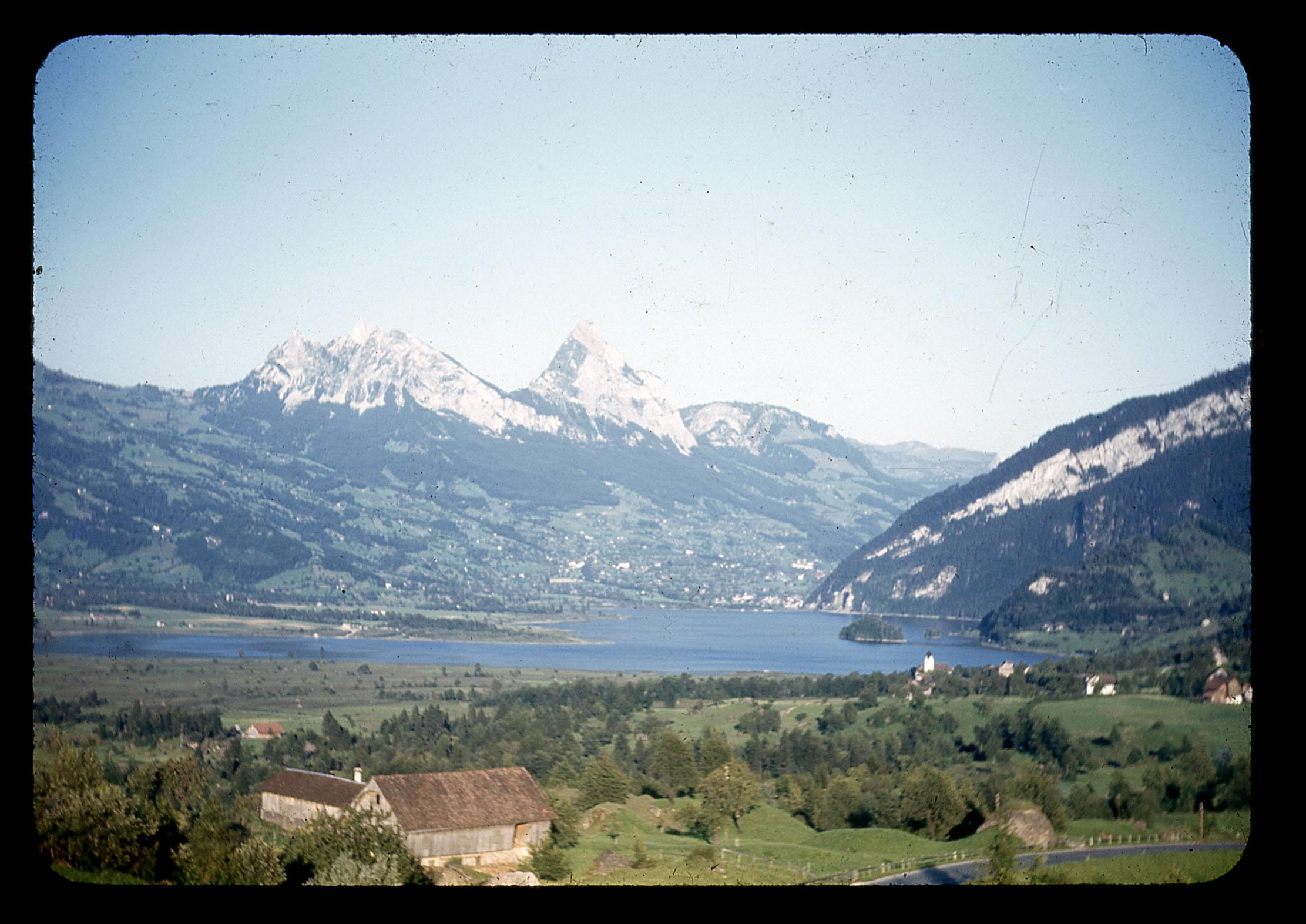 "white capped mts. in distance"