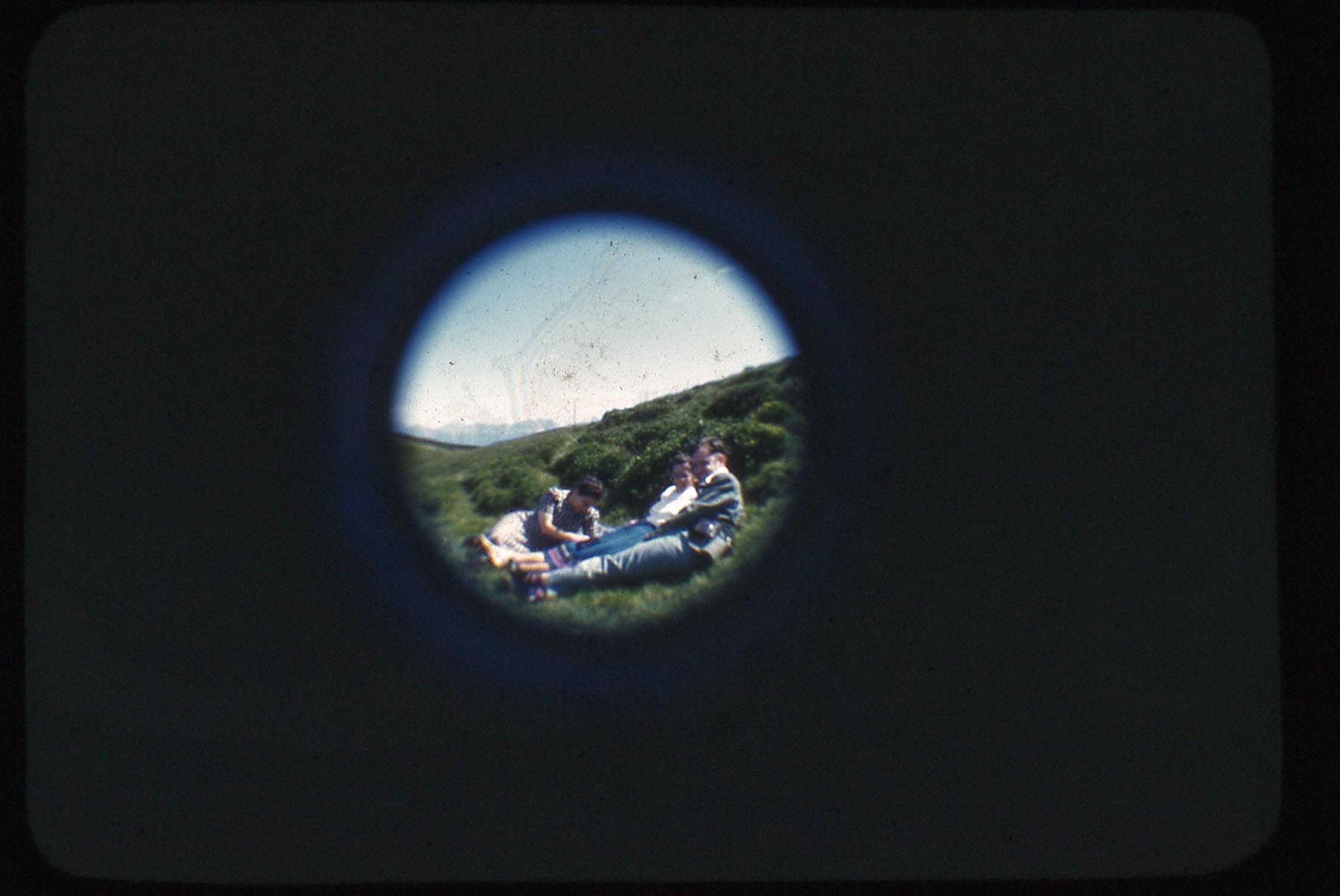 "Telescope view, Mary, Joni & I, Tyrol Mts."