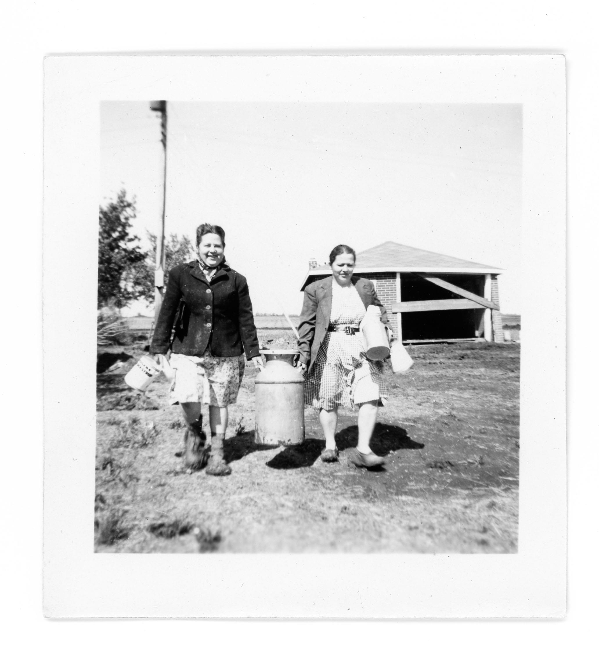 "Two sisters after cleaning a very dirty, flood ruined house."