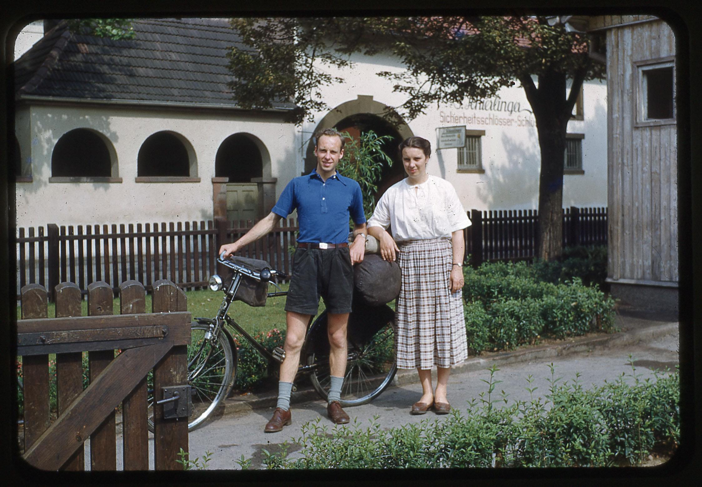 "Tina & Dick Von der Laag in front of Nach'heim. Aug. 1951"